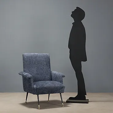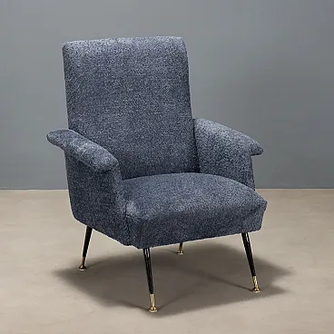 Poltrona in espanso, tessuto, metallo e ottone, '900