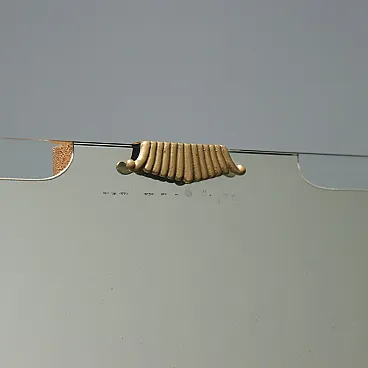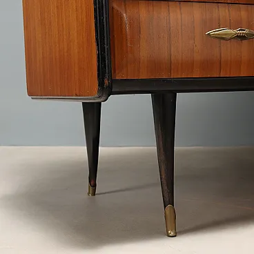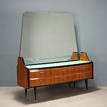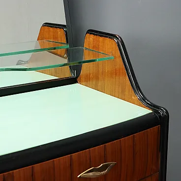 Comò con specchio e ripiano in vetro, legno esotico e ottone, '900