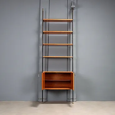 Libreria in legno impiallacciato mogano, metallo e ottone, '900