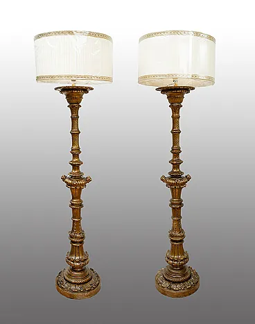 Coppia di lampade stile Luigi XV in legno dorato, '800