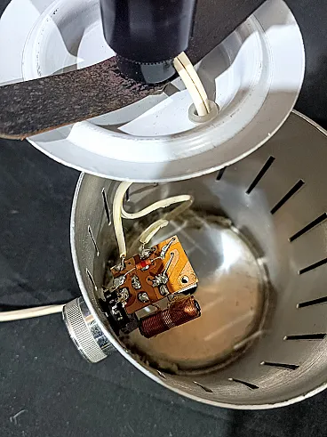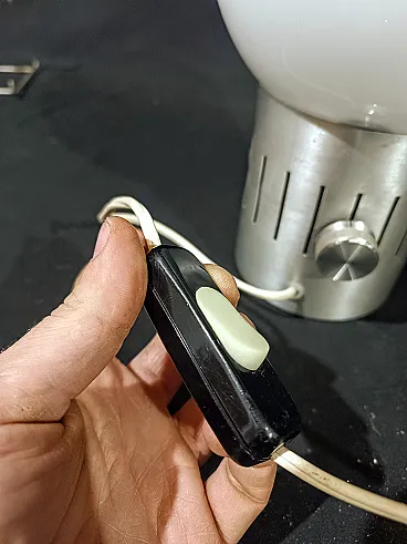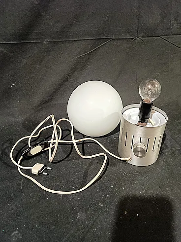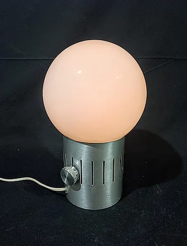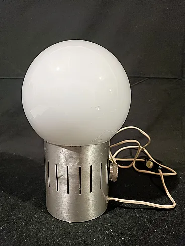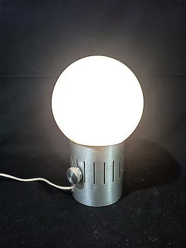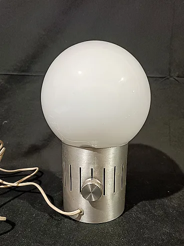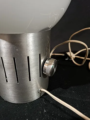 Lampada tavolo dimmerabile acciaio vetro opalino space Age, anni '70