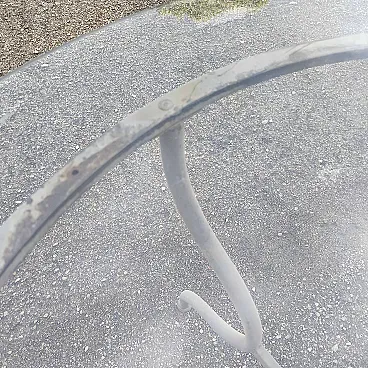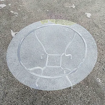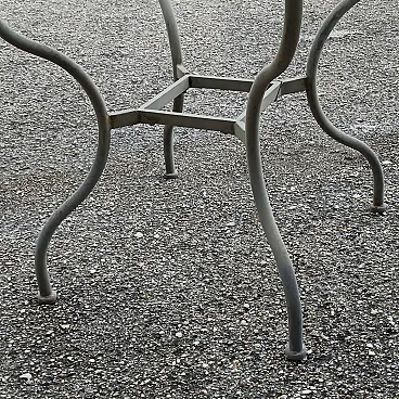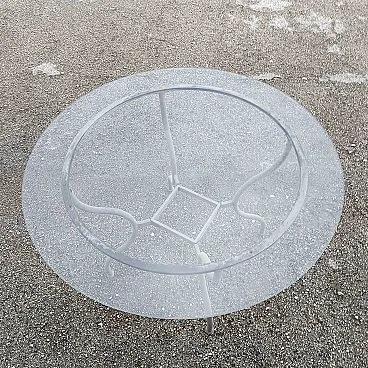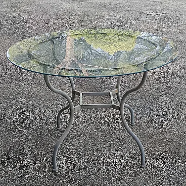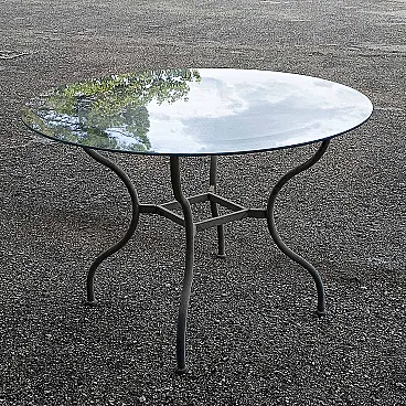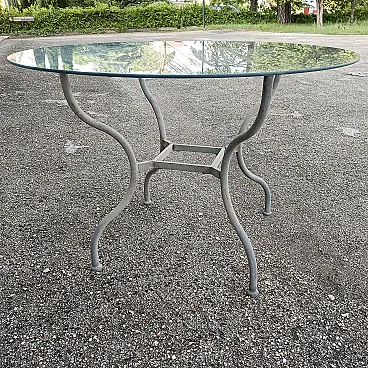 Tavolo in ferro da esterno con piano rotondo in vetro, anni '90