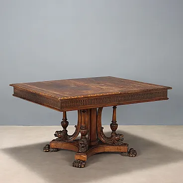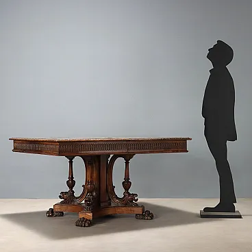 Tavolo in noce in stile neorinascimentale, fine '800
