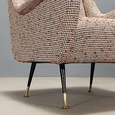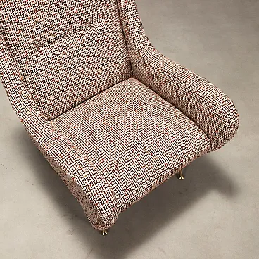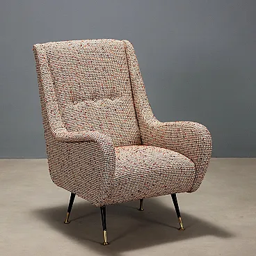 Poltrona in espanso, tessuto, metallo e ottone, '900