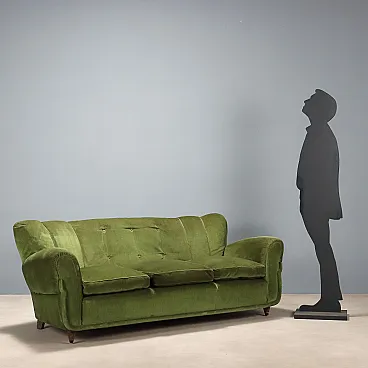 Divano 3 posti, cuscini a molle e piuma, rivestimento in velluto, '900