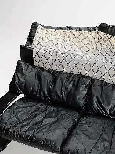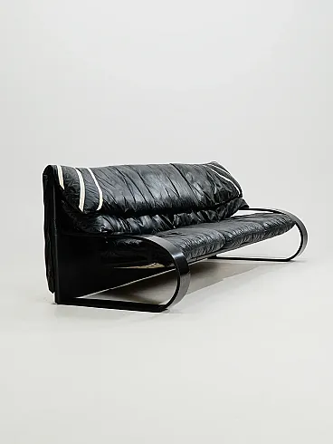 Divano a tre posti in pelle di Coralba, anni '80