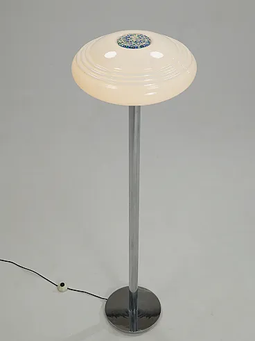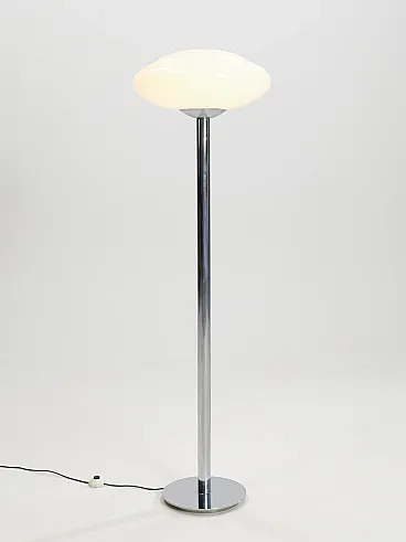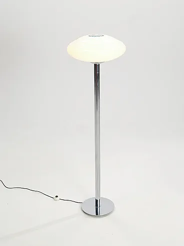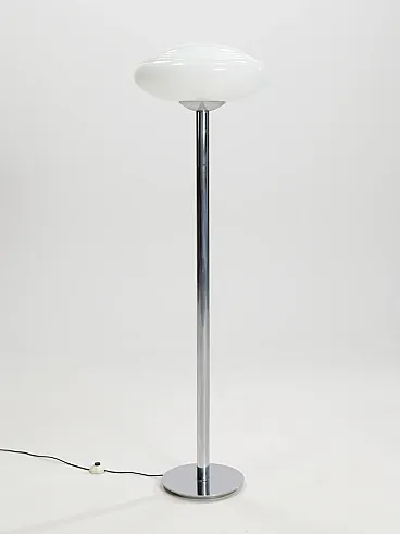 Lampada da terra in acciaio cromato e vetro, anni '70