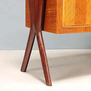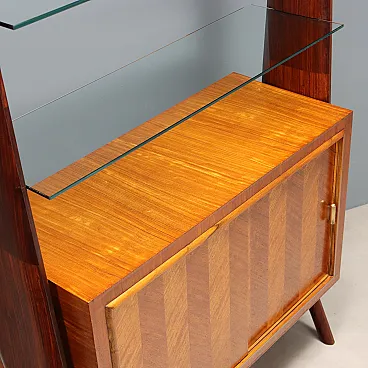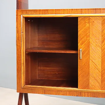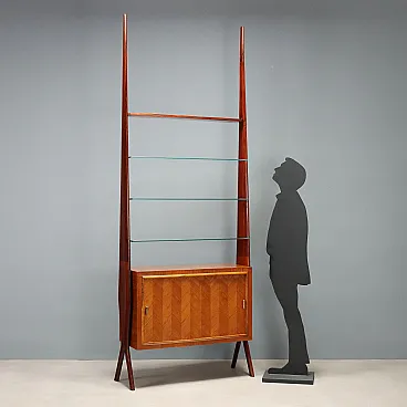 Libreria autoportante in legno esotico, mogano, vetro e ottone, '900