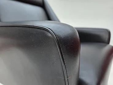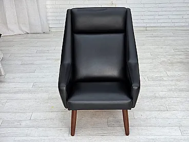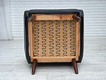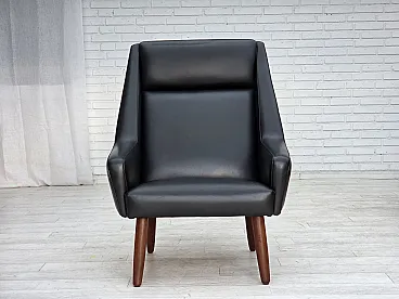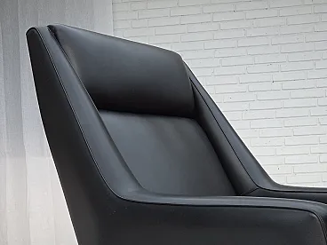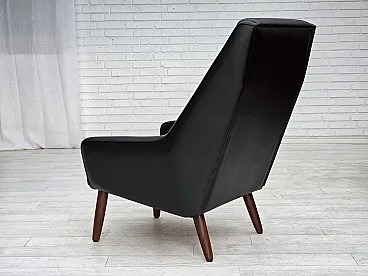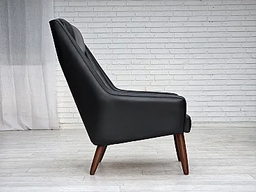 Poltrona danese in pelle artificiale nera e teak, anni '70