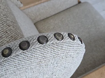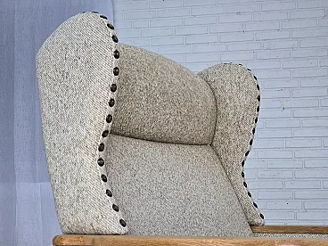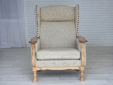 Poltrona danese in lana e legno massello di rovere, anni '70