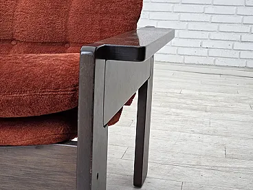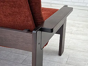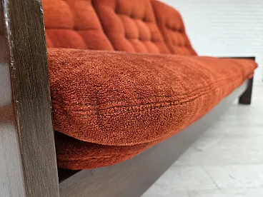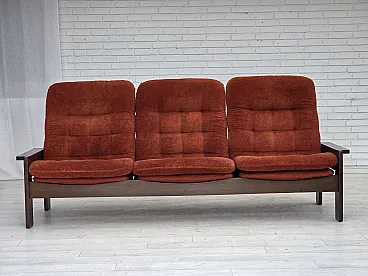 Divano danese a 3 posti in velluto arancione/rosso e quercia, anni '70