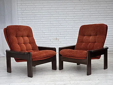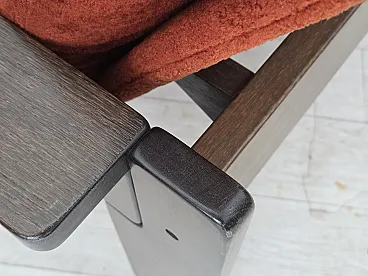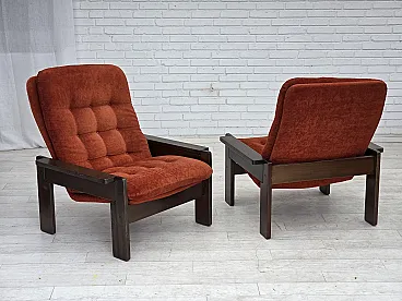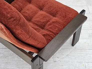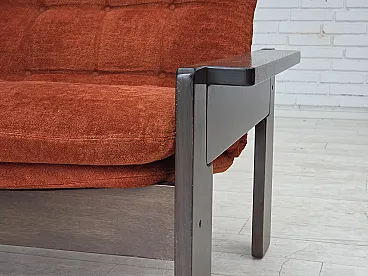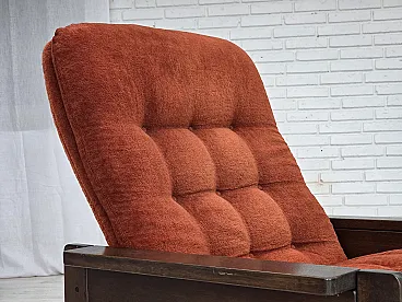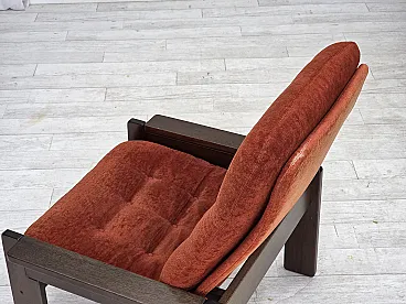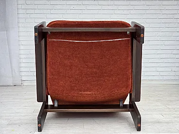 Poltrona danese in velluto arancione/rosso quercia scura, anni '70