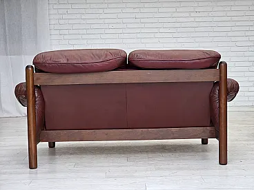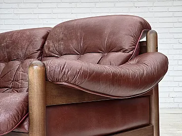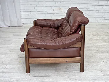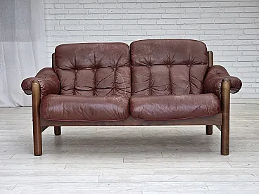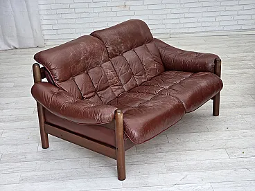 Divano svedese a 2 posti, pelle marrone con patina, anni '70