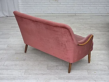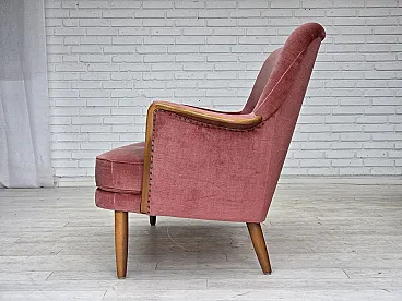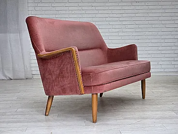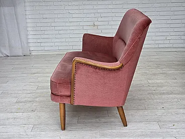 Divano svedese a 2 posti in velluto rosa, legno di faggio, anni '70