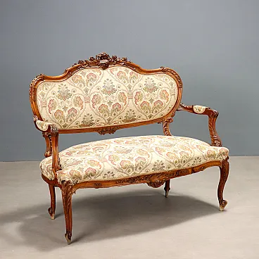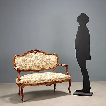 Divano a due posti in noce in stile tardo barocco, fine '800