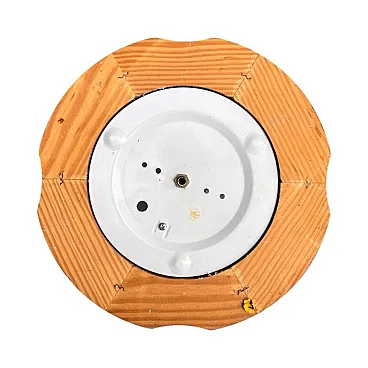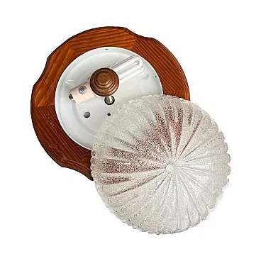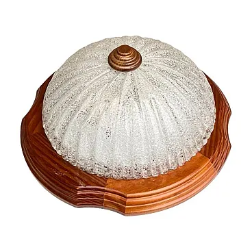 Lampada da soffitto in vetro ghiacciato e legno, anni '70