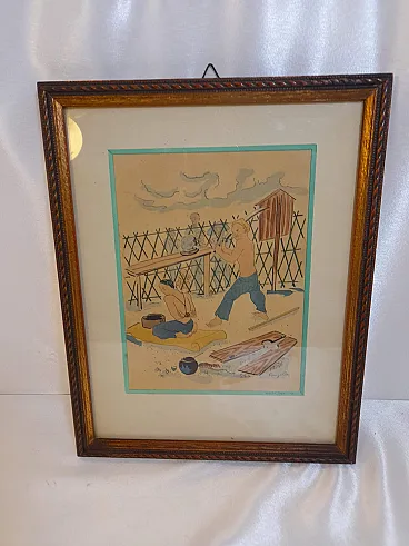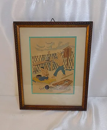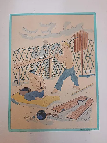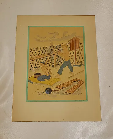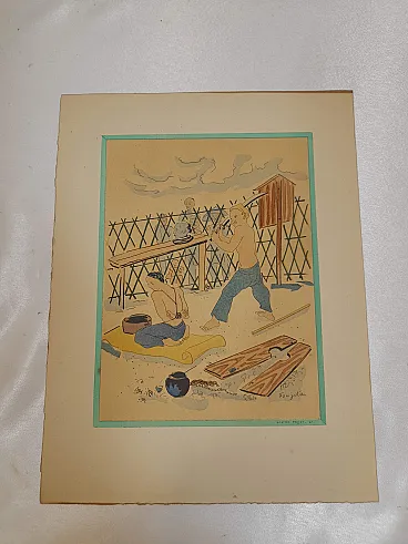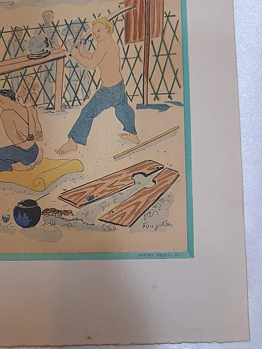 Litografia Esecuzione di un tossicodipendente di Tsuguharu Fujita