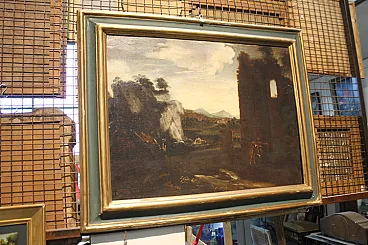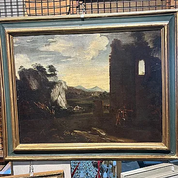 Dipinto Paesaggio e rovine con personaggi, '700
