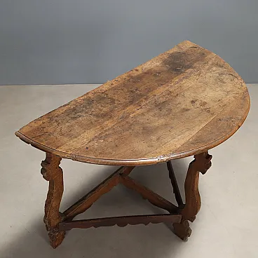 Consolle barocca a mezzaluna in noce, XVIII secolo