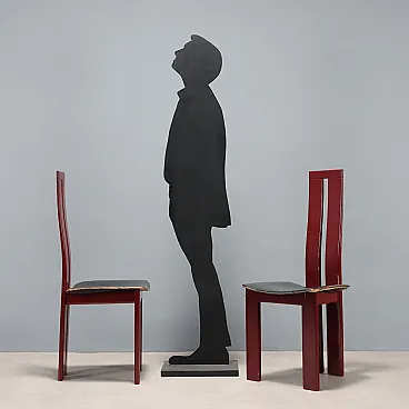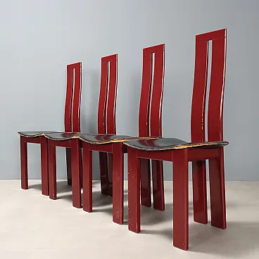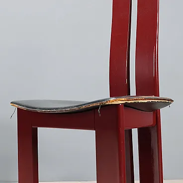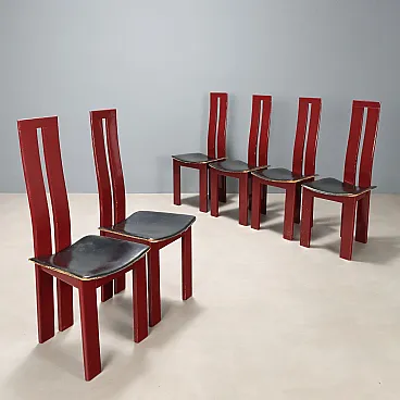 6 Sedie in legno laccato nero e sedili in pelle, '900