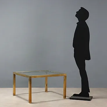 Tavolino con struttura in ottone e piano quadrato in vetro, '900