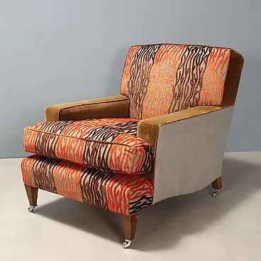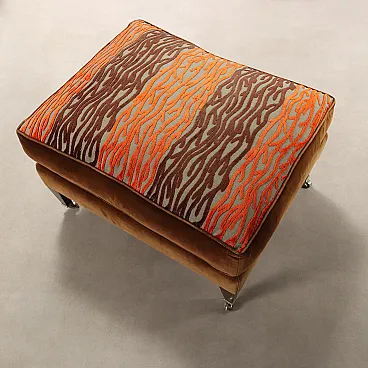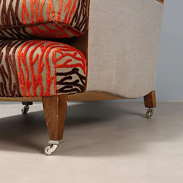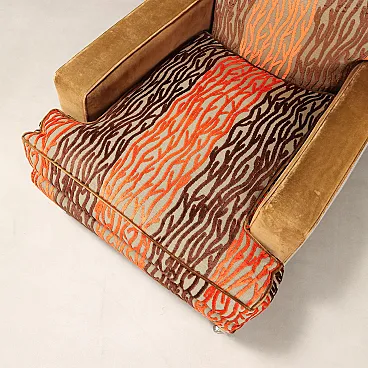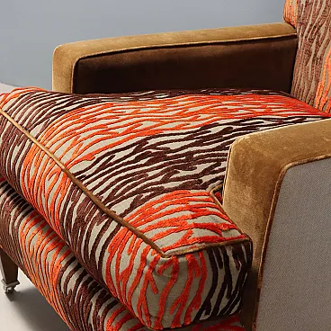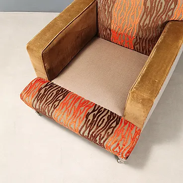 Coppia di poltrone con pouf in faggio e velluto, '900