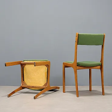 4 Sedie in legno di faggio, imbottitura in espanso, tessuto, '900