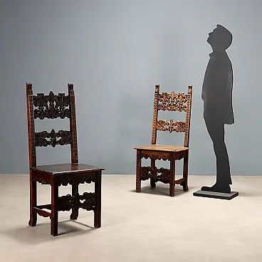 Coppia di sedie in noce in stile barocco, fine '800