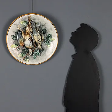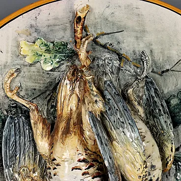 Piatto da esposizione in maiolica raffigurante selvaggina, '900
