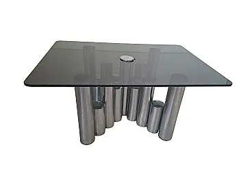 Tavolino di Marco Zanuso Cromo e Vetro Fumè, anni '70