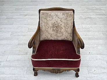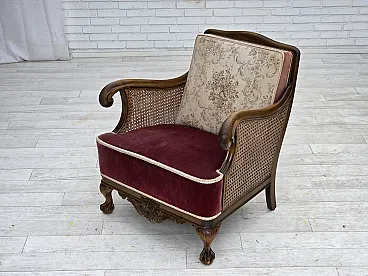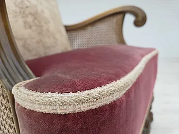 Poltrona danese, lana, velluto, quercia, anni '40