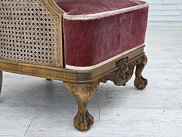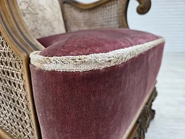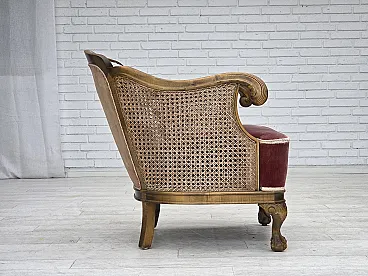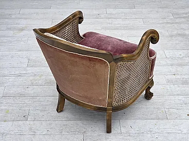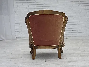 Poltrona danese, lana intrecciata, velluto e quercia, anni '40