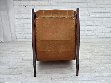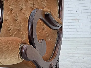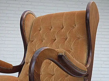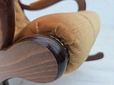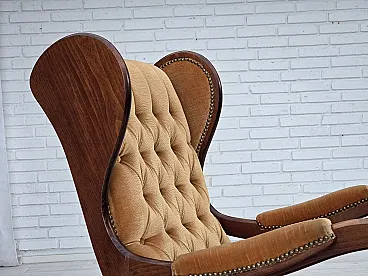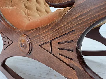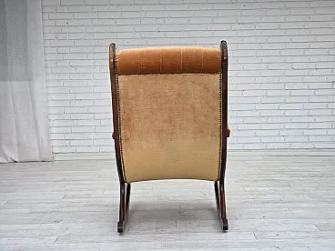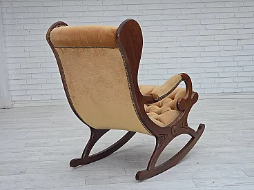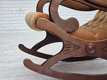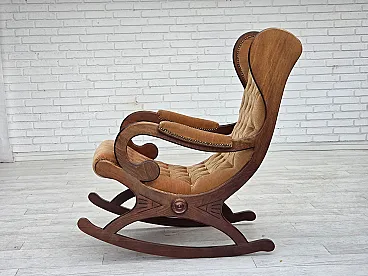 Sedia a dondolo scandinava in velluto, legno di faggio scuro, anni '60