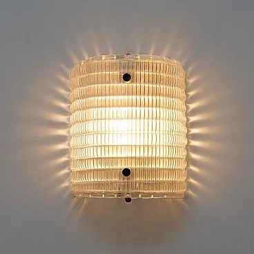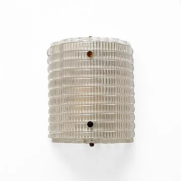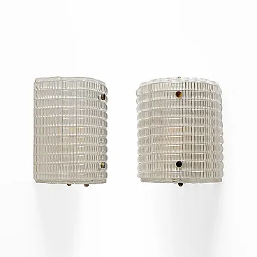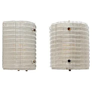 Coppia di applique in vetro di Murano con texture a coste, '900