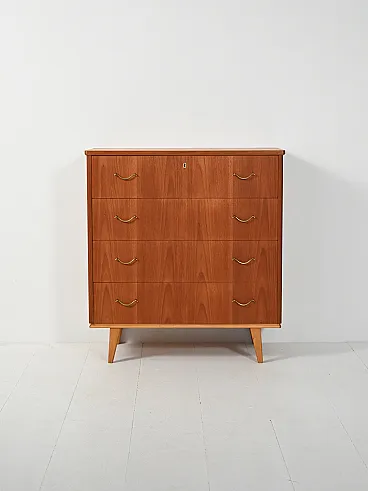 Cassettiera scandinava con doppia maniglia in ottone