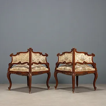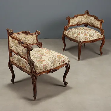 Coppia di poltroncine angolari in noce in stile tardo barocco, '800