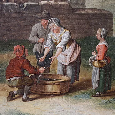 Quadro di notevole qualità pittorica, da sottolineare infatti l'attenzione descrittiva ai dettagli naturalistici e la caratterizzazione dei personaggi. L'autore dell'opera va ricercato tra i pittori attivi in area piemontese verso la metà del XVIII secolo. Soprattutto nel territorio torinese si era infatti sviluppata una pittura di paesaggio fortemente influenzata dai modelli fiamminghi, ma filtrata attraverso una sensibilità più composta, ordinata e borghese.