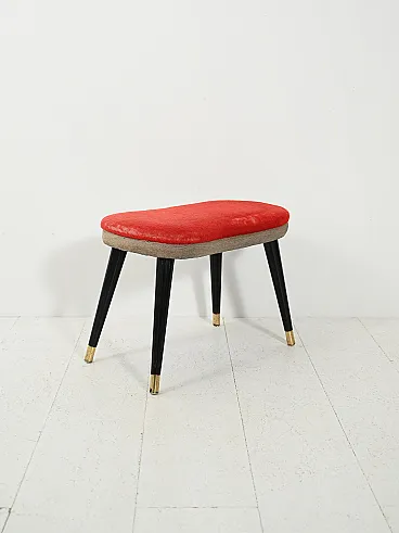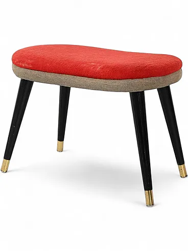 Sgabello scandinavo con velluto rosso e ottone, anni 50