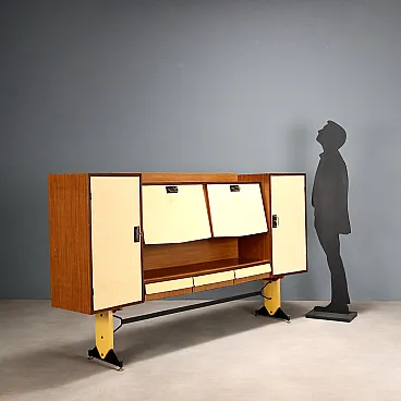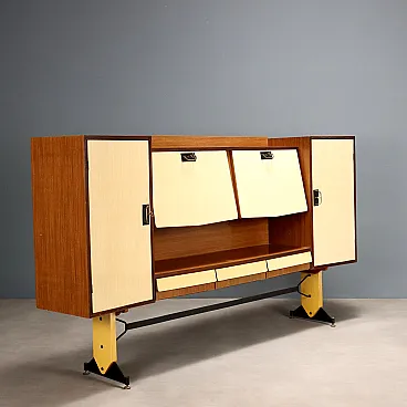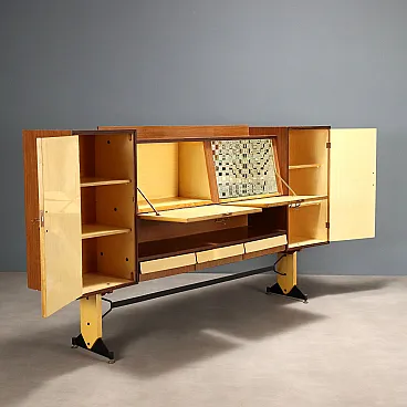 Mobile da soggiorno in laminato con ante battenti e a ribalta, '900