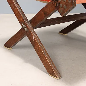 Poltrona in legno e tessuto con braccioli a vista, '900