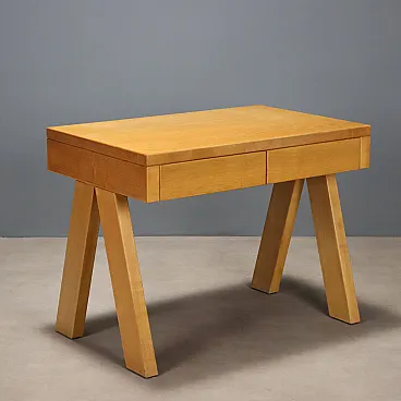 Scrittoio in legno di larice con due cassetti sottopiano, '900