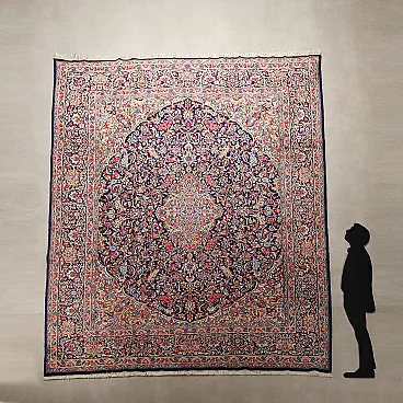 Tappeto Kerman in cotone e lana, nodo grosso, fatto a mano, '900