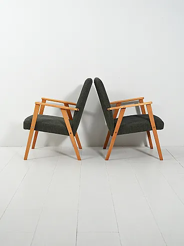 Coppia di Poltrone scandinave in faggio grigia, anni '50