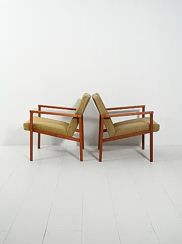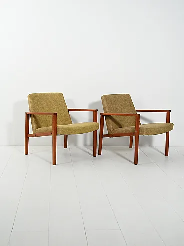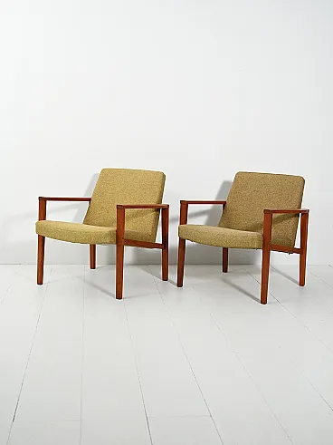 Coppia di poltrone danesi in teak con tappezzeria verde