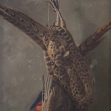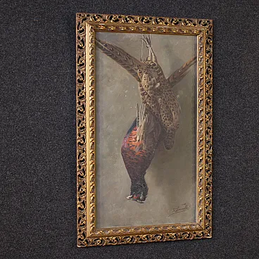 Dipinto firmato natura morta con cacciagione, '900