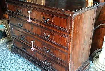 Cassettone in listra e massello di noce con intarsi geometrici, '600 4