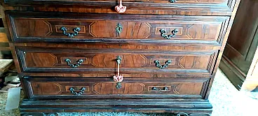 Cassettone in listra e massello di noce con intarsi geometrici, '600 11