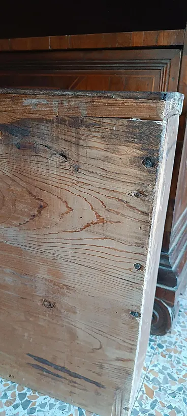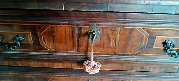 Cassettone in listra e massello di noce con intarsi geometrici, '600 9