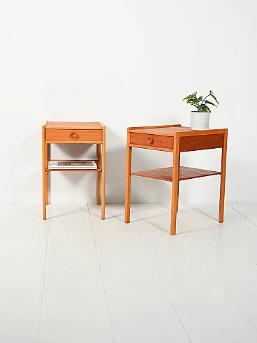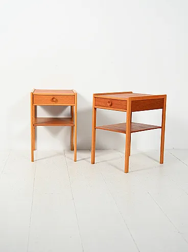 Coppia di comodini scandinavi in teak con maniglia scolpita, anni '60