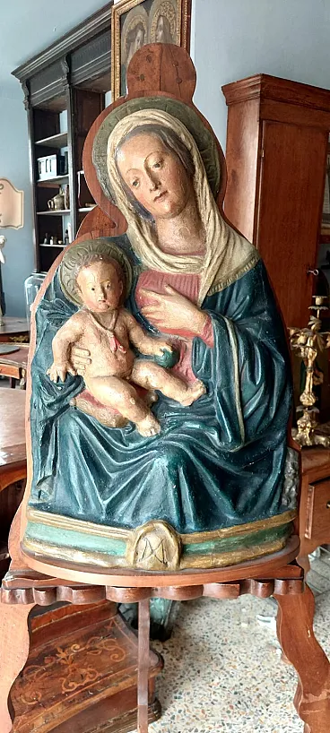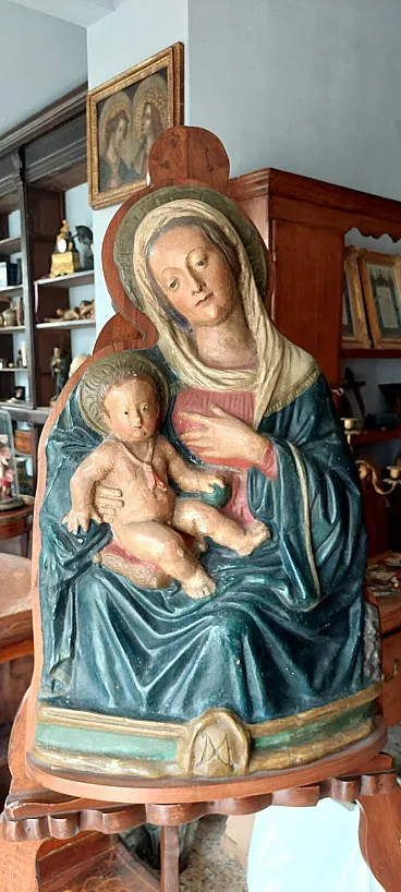 Madonna del latte, scultura altorilievo in cartapesta policroma, '600